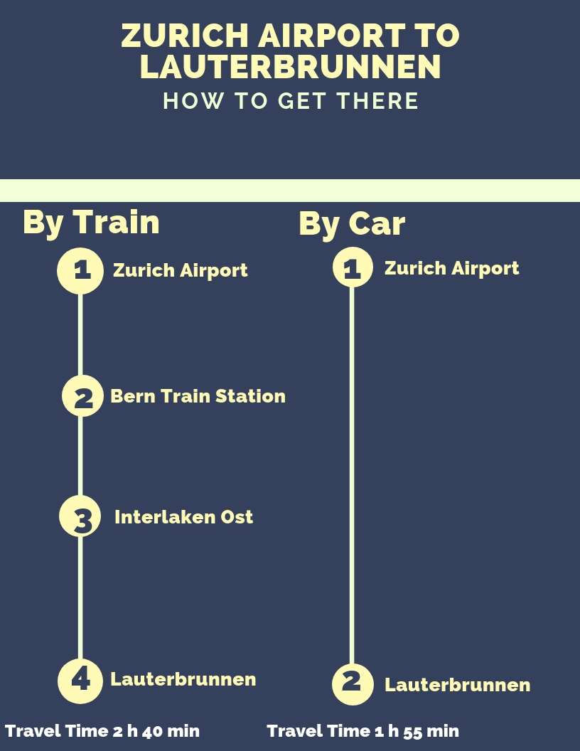 Our Infographic shows you how to get from Zurich airport to Lauterbrunnen