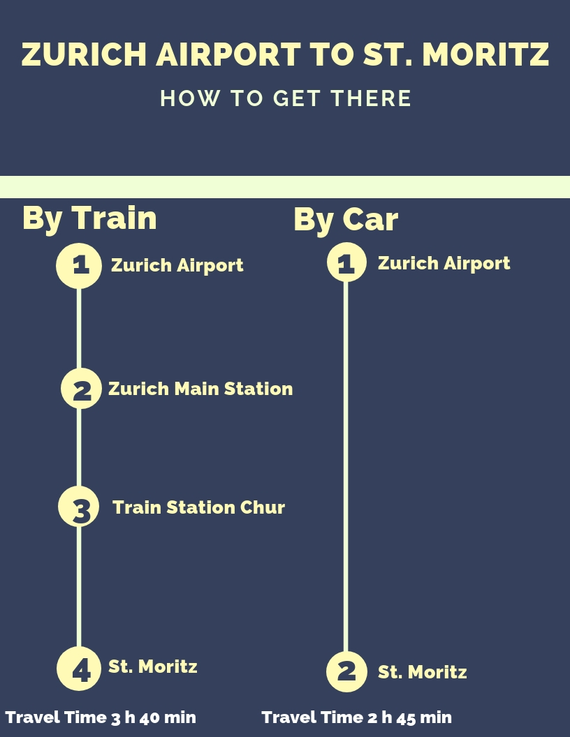 Our Infographic shows how to get from Zurich Airport to St. Moritz